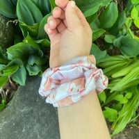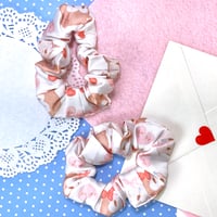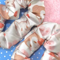 Inspired by kitschy 1950's Valentine's cards, this scrunchie hair tie features a heartbroken bear and kitten pattern!